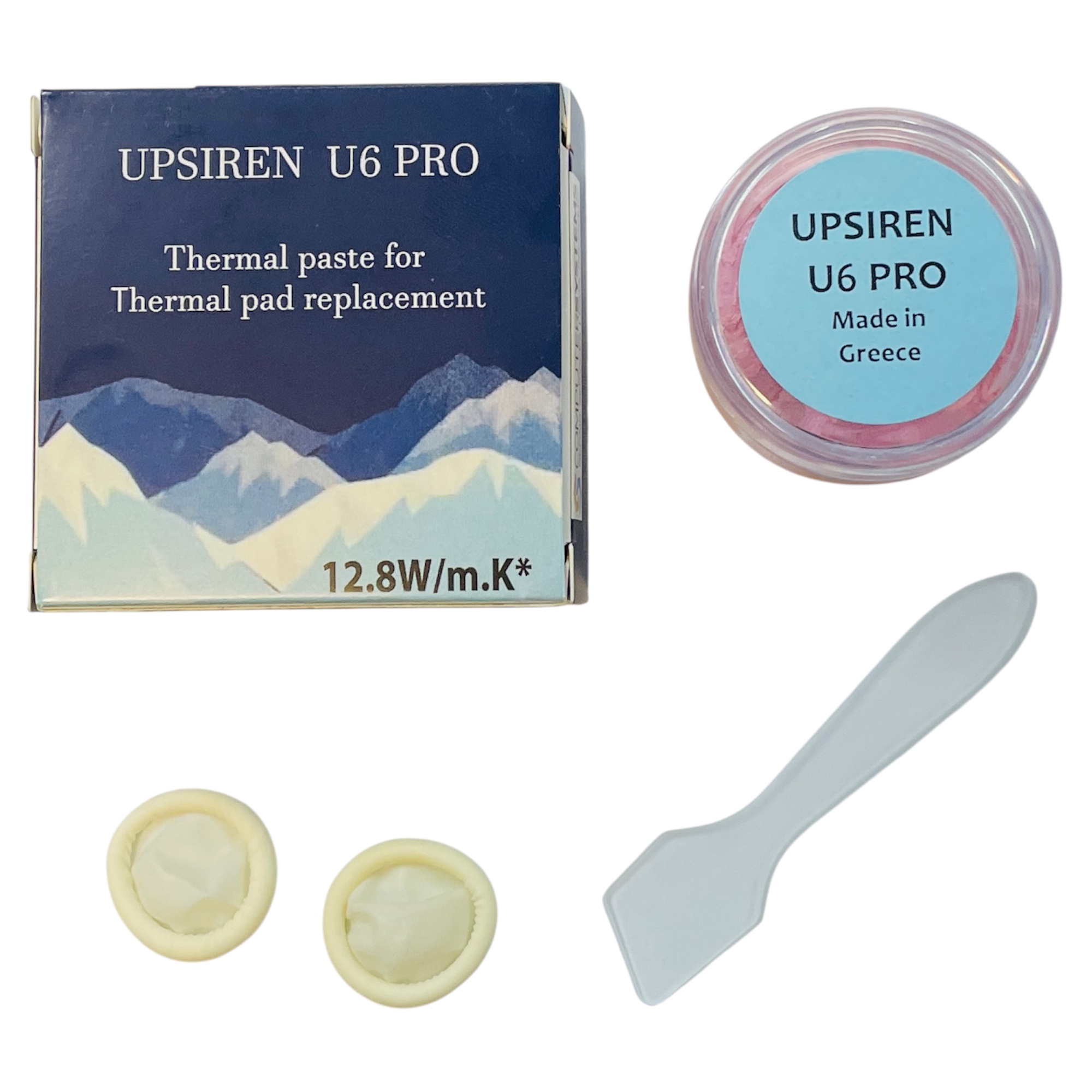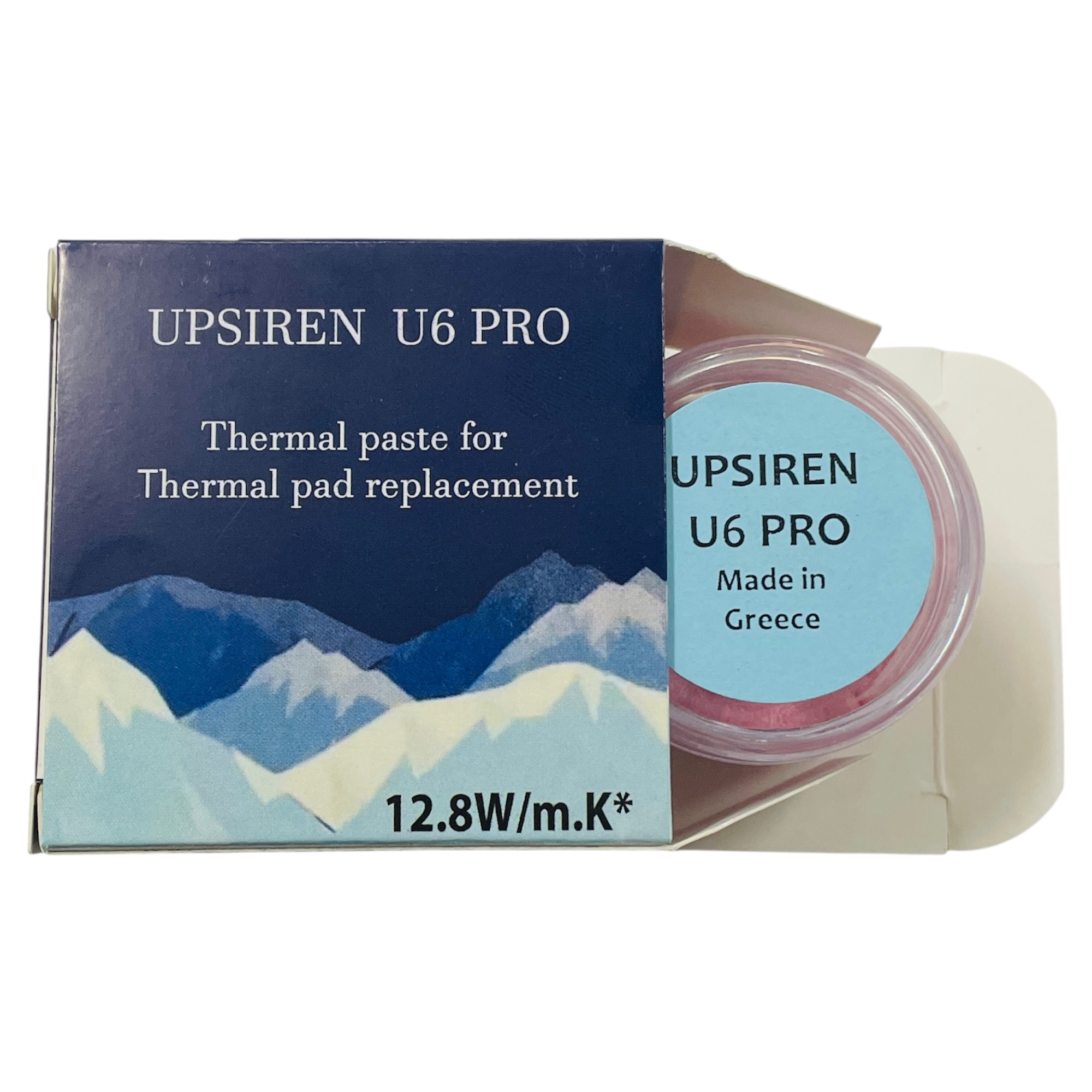 UPSIREN U6 PRO 50g is a workshop oriented size of our high performance thermal putty for compact cooling hardware. It establishes a conformable heat path between components and thin heat sinks used in gaming laptops and space constrained devices, improving contact where conventional pads leave gaps. With 12.8 W/m·K* conductivity and electrical non-conductivity, it helps tame temperatures across VRAM, VRM, and controller hot spots.